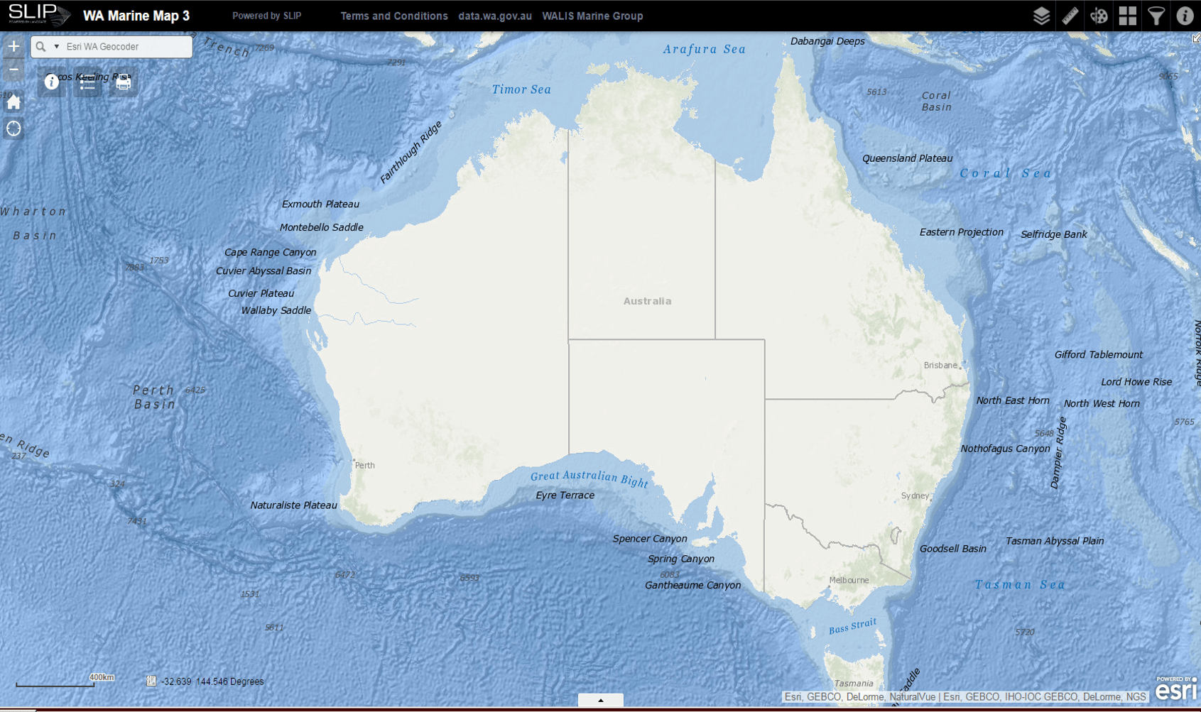 Access these and other datasets via the data.wa.gov.au catalogue: WA marine map or as marine data services.